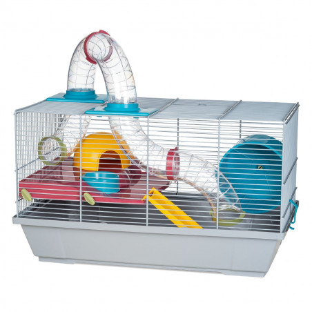 Cette grande cage, très complète, est idéale pour les hamsters russes et Roborosky, grâce à une maille avec une séparation entre les fils de 7mm. Fabriqué en Espagne Fabriqué en Europe (Espagne), avec de la peinture époxy sans plomb et du plastique polypropylène non toxique.