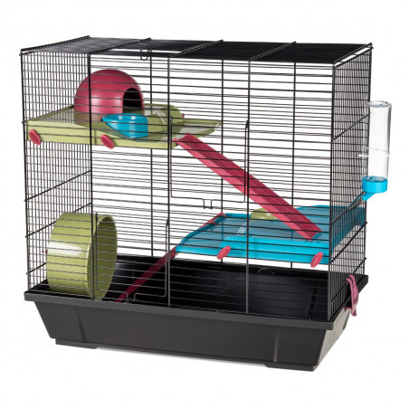 Cette cage moyenne est idéale pour les hamsters communs. Fabriqué en Espagne Fabriqué en Europe (Espagne), avec de la peinture époxy sans plomb et du plastique polypropylène, non toxique.