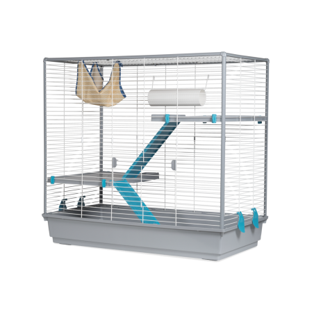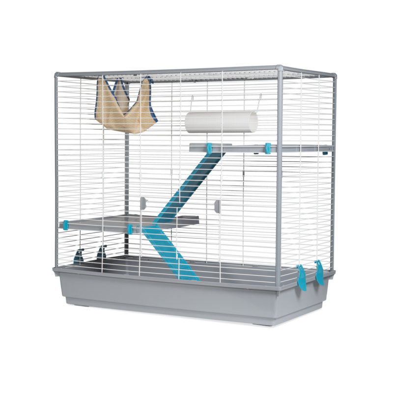 Cage large et pliable, avec un grand espace, idéale pour les furets. Fabriqué en Europe (Espagne), avec de la peinture époxy sans plomb et du plastique polypropylène, non toxique.