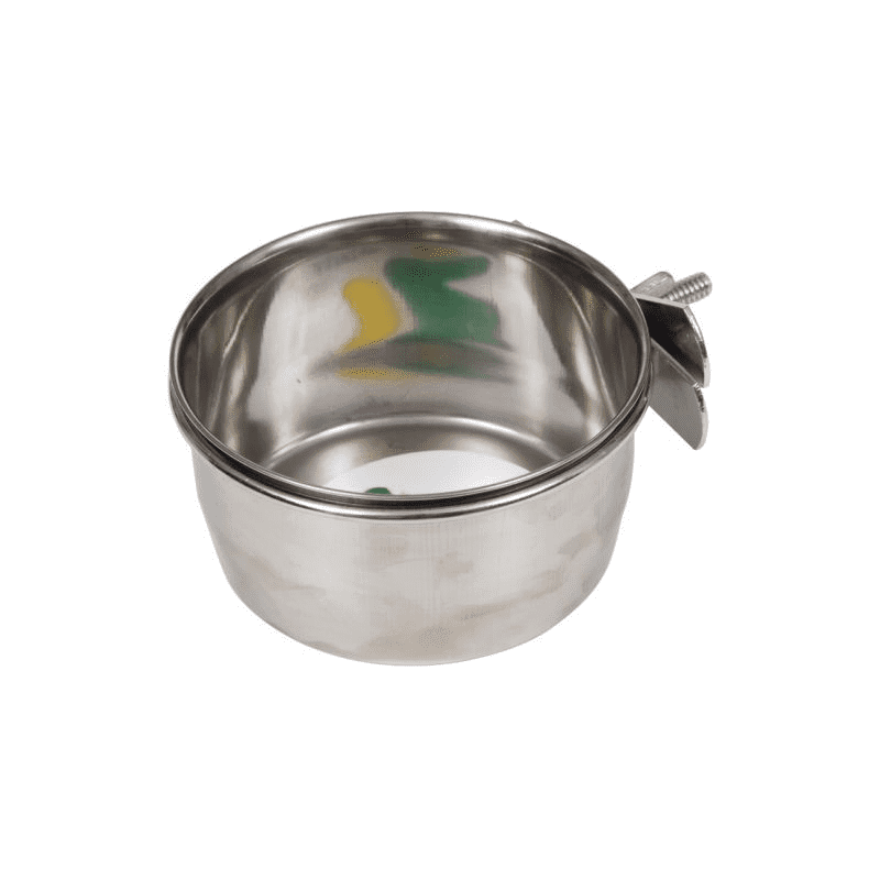 Cette mangeoire-abreuvoir peut être adaptée à toutes les cages de perroquets Voltrega. Sa fermeture à crochets et boucles vous permet de l'attacher à n'importe quelle cage. Taille : 9,5 cm de diamètre.