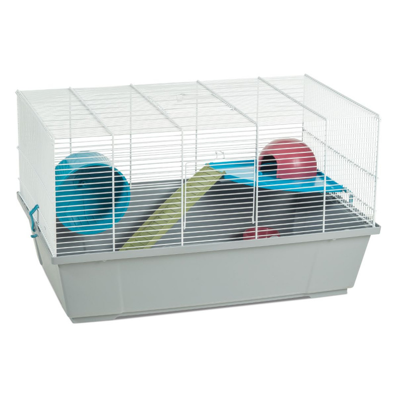 Cette grande cage, très complète, est idéale pour les hamsters russes et Roborosky, grâce à une maille avec une séparation entre les fils de 7,5mm. Fabriqué en Espagne Fabriqué en Europe (Espagne), avec de la peinture époxy sans plomb et du plastique polypropylène non toxique. Comprend un abreuvoir.