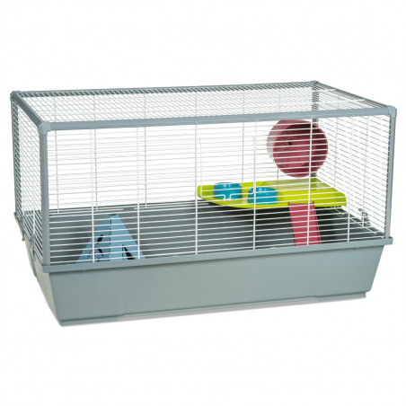 Cette grande cage, très complète, est idéale pour les hamsters. Fabriqué en Espagne Fabriqué en Europe (Espagne), avec de la peinture époxy sans plomb et du plastique polypropylène non toxique. Comprend un abreuvoir.