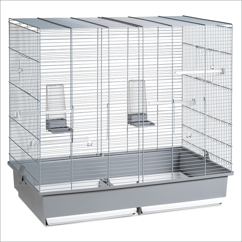 Cette cage rectangulaire convient à tous les types d'oiseaux de petite et moyenne taille. Fabriqué en Espagne, avec de la peinture époxy sans plomb et du plastique polypropylène non toxique. Il contient deux abreuvoirs/mangeoires couverts qui empêchent le gaspillage de nourriture et plusieurs sauteurs. Cette cage possède plusieurs portes (une de chaque côté), ce qui la rend idéale pour un nid ou une baignoire. Il peut également être combiné avec une base Voltregà. Voltregà recommande de nettoyer la cage avec des produits spécialisés une fois par semaine pour améliorer la santé et le confort de votre animal. Il est recommandé de mettre une litière de type granulé dans les bacs de la cage et de la changer toutes les semaines.