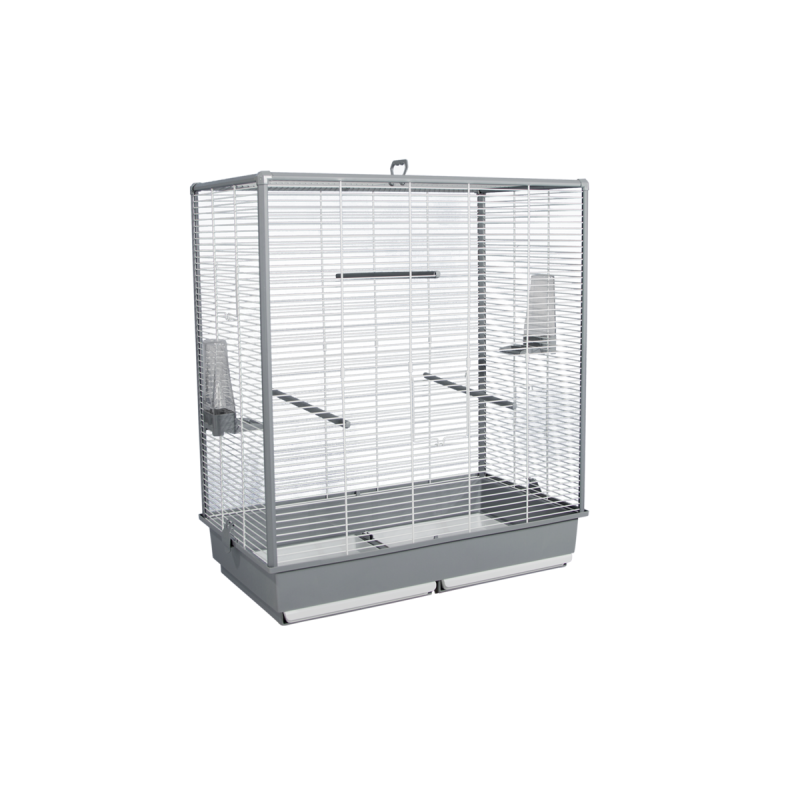 Cette cage, grâce à sa grande capacité, convient à plus d'un oiseau. Fabriqué avec le système de bandes Voltrega, un système de montage rapide pour les cages amovibles. Fabriqué en Espagne, avec de la peinture époxy sans plomb et du plastique polypropylène non toxique. Contient un plateau avec double bac amovible pour un nettoyage facile, une poignée, deux abreuvoirs / mangeoires et des sauteurs. Il peut également être combiné avec un support de base Voltregà.